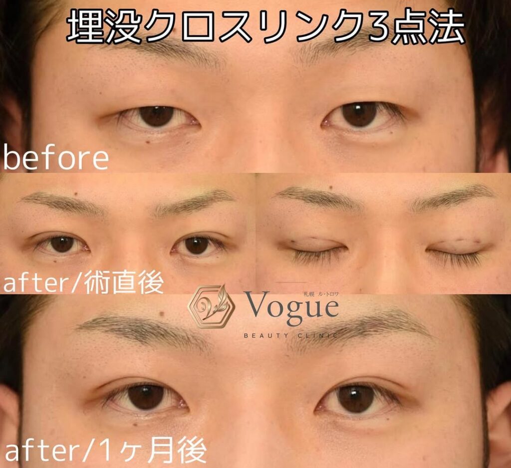こちらの患者様は、左目、右目で異なる術式による埋没手術を行いました。