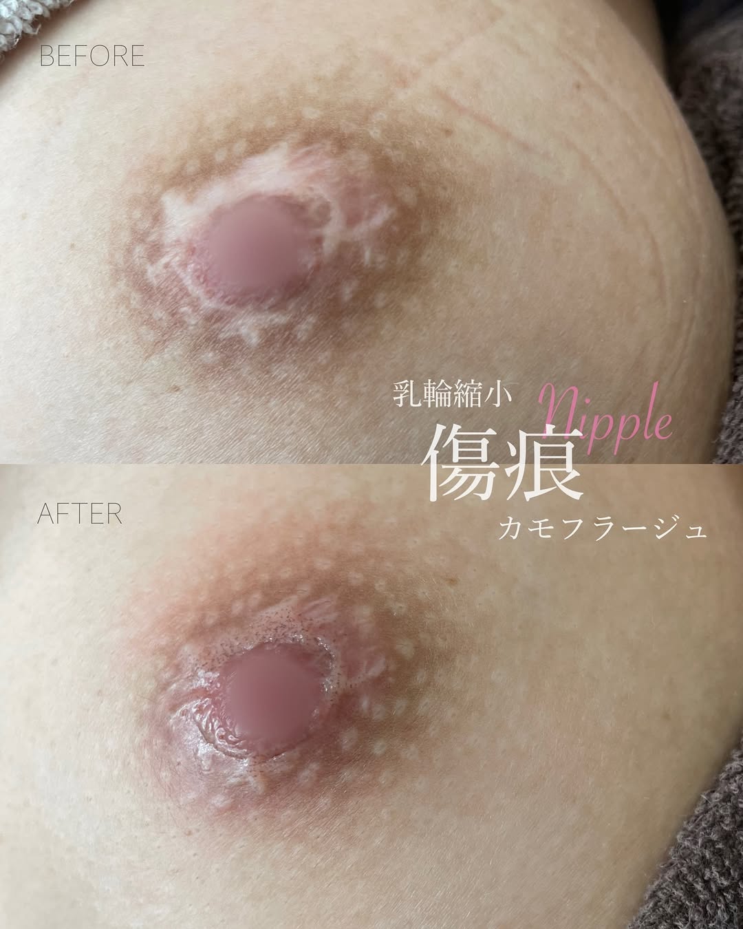 気になる傷跡や妊娠線や肉割れといった中々カバーしにくい箇所を、目立たないようアートメイクで入れる施術になります。