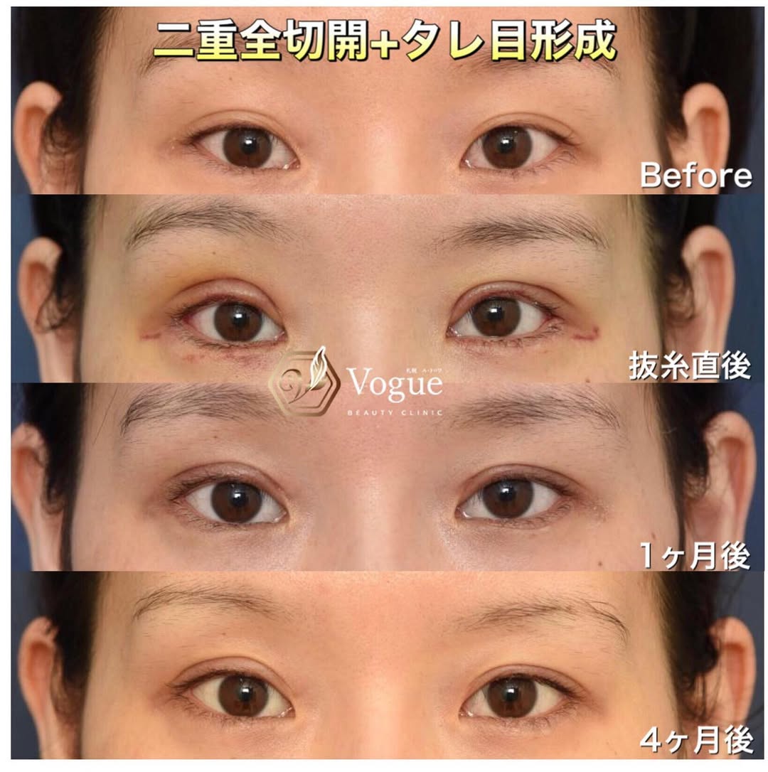 横方向に広げる目尻切開に加え、下方向に広げるたれ目形成を同時に施術することで目の大きさを最大限に広げることができるのでおすすめです。