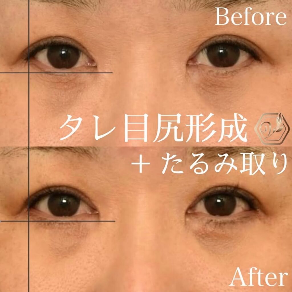 下まぶたの目尻側を斜め下方向に下げて目を大きく、かつ垂れ目に見せる手術です。