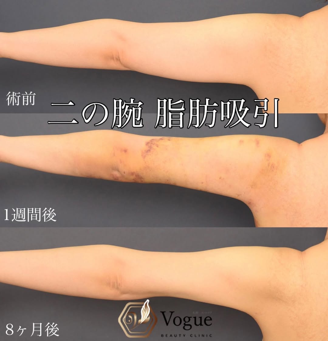 二の腕の脂肪吸引は比較的簡単に行える手術ではありますが、吸引後、せっかく細くなったのに皮膚がたるんで振りそでの様になってしまった、前腕よりも細くなってバランスが悪くなった、吸引され過ぎて男性の様に筋肉が目立ってしまった、などのケースが非常に多く散見されます。脂肪吸引はただ吸引するだけではやはり綺麗にする事は難しいため、当院ではベイザーリポを使用して最大限たるみを改善し、適した部位を適した量吸引する事で、自然で滑らかな二の腕を形成する事をお約束します。